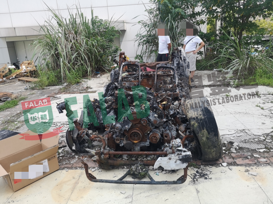 李某驾驶车辆至小路后因路窄无法行使,遂掉头陷于田地。车主采用前进、后退交替进行尝试脱困未果,涉案车辆前方发动机舱开始冒烟,随即起火。车主诉至法院,法院为审理案件委托我单位对车辆起火原因进行鉴定,我单位受理了此鉴定。